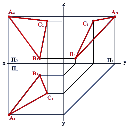 Построение профильной прямой в плоскости треугольника