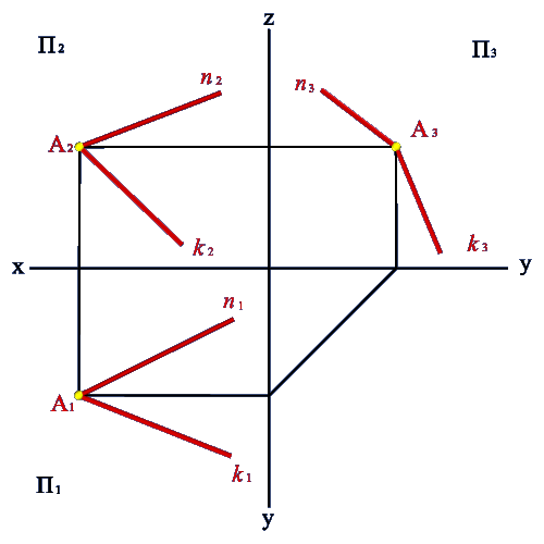 Задача. Через точку В провести прямую m, если известно, что она принадлежит плоскости, заданной пересекающимися прямыми n и k.