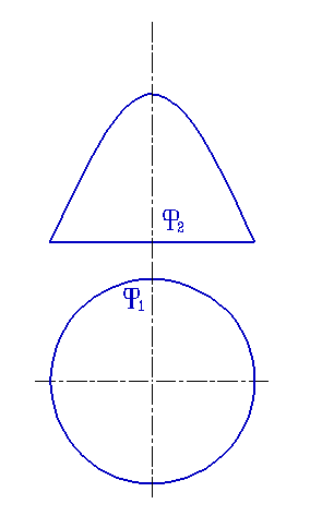 касательной плоскости Так как плоскость однозначно определяется двумя пересекающимися прямыми, то для построения касательной плоскости к поверхности в данной точке достаточно через эту точку провести две линии, принадлежащие поверхности, и к каждой из них провести касательные в заданной точке. Касательной прямой к поверхности называется прямая, касательная к какой-либо кривой, принадлежащей поверхности. На рисунке рассмотрен пример построения касательной плоскости к параболоиду вращения Ф в точке М. |