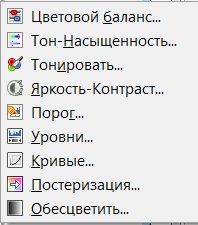 Цветовой баланс — инструмент изменяет баланс цветов активного слоя или выделения в выбранном диапазоне цветов. Изменения невелики. Этот инструмент особенно полезен для исправления доминирующих цветов в цифровых фотографиях. |
