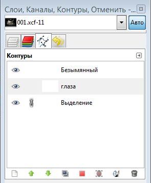Это диалоговое окно используется для управления контурами — создания, сохранения, удаления, а также преобразования выделенных областей в контуры и наоборот. Контур создаётся только для одного изображения. Фактически, контур является такой же частью изображения, как и слой. В диалоговом окне контуров содержится полный список всех контуров, которые присутствуют в текущем активном изображении.