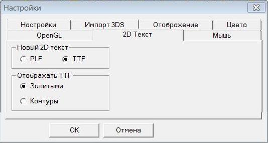 — "Свойства 2D-текста", функция позволяет изменить содержание, шрифт, размер и наклон символов, угол наклона строк текстовых объектов. Текст в bCAD может быть двух форматов — PLF и TTF, — которые выбираются в настройках программы.